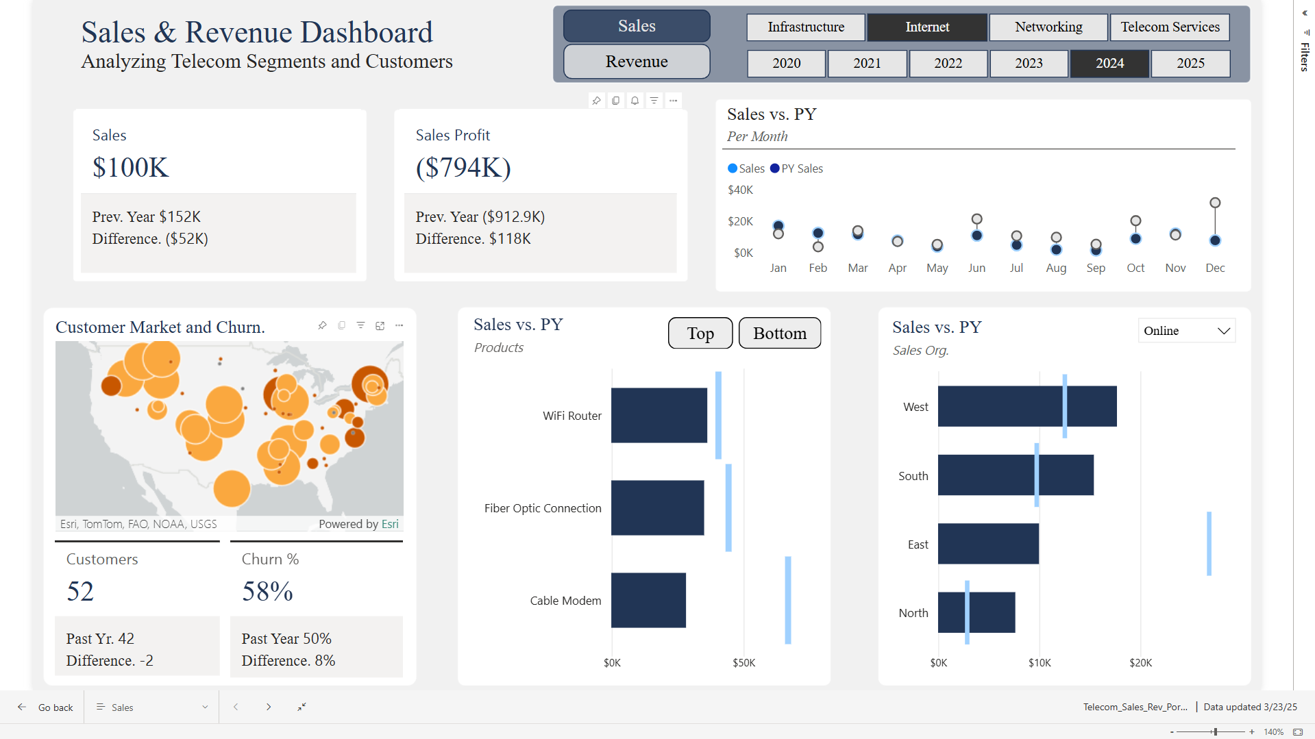 This telecom company was facing a noticeable drop in sales and revenue — but couldn’t pinpoint why. Their sales data lived in different systems, which made it almost impossible to track performance by region, product, or rep. Monthly reporting was a manual, time-consuming process. Leaders didn’t have the visibility they needed to take action quickly.